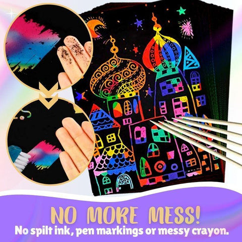Experience creative magic with Rainbow Scratch Art Paper. This paper features rainbow-hued colors that are revealed when lightly scratched with a stylus. Unleash your imagination and discover beautiful designs and illustrations. Enjoy hours of artistic fun for all ages with this unique art paper.